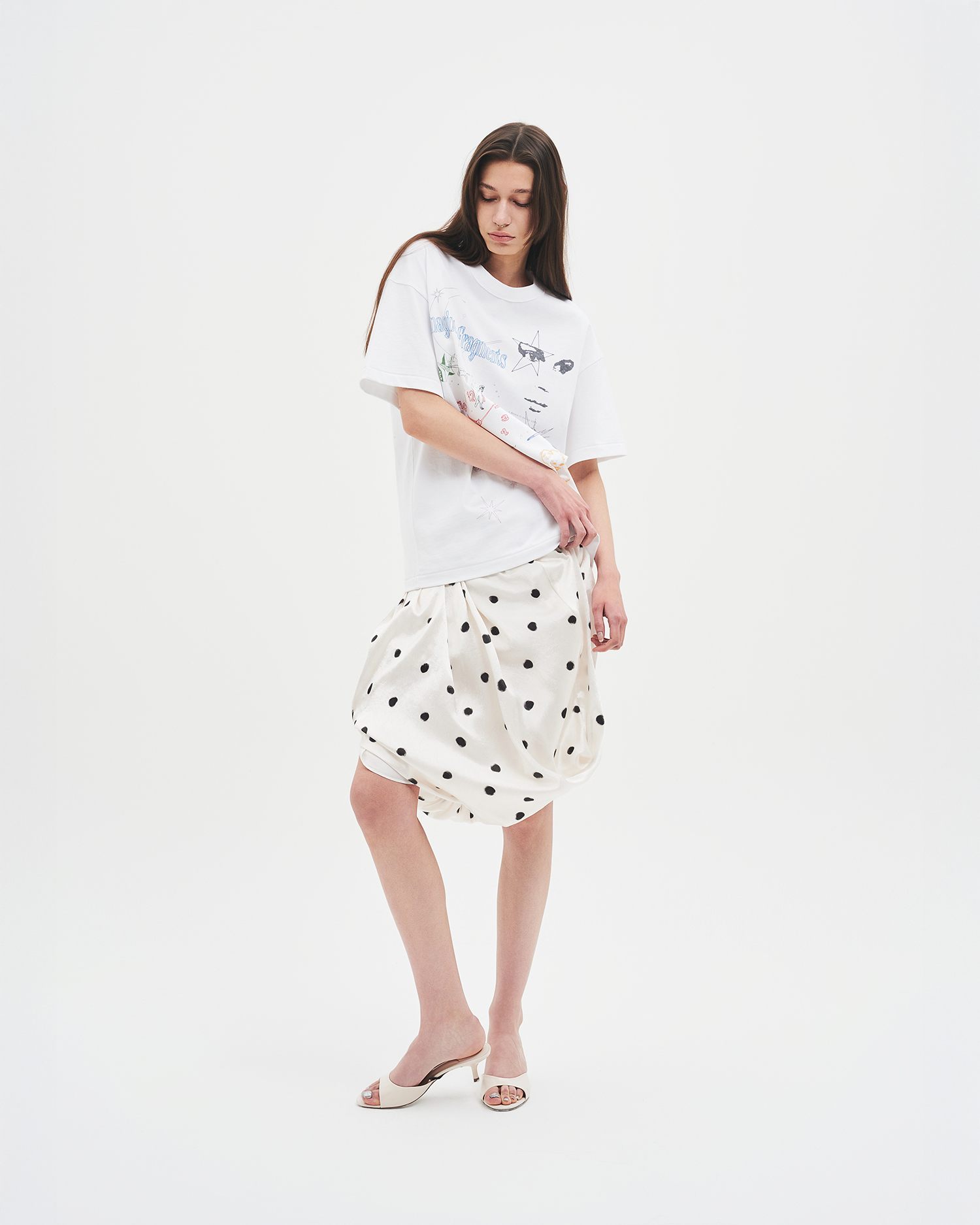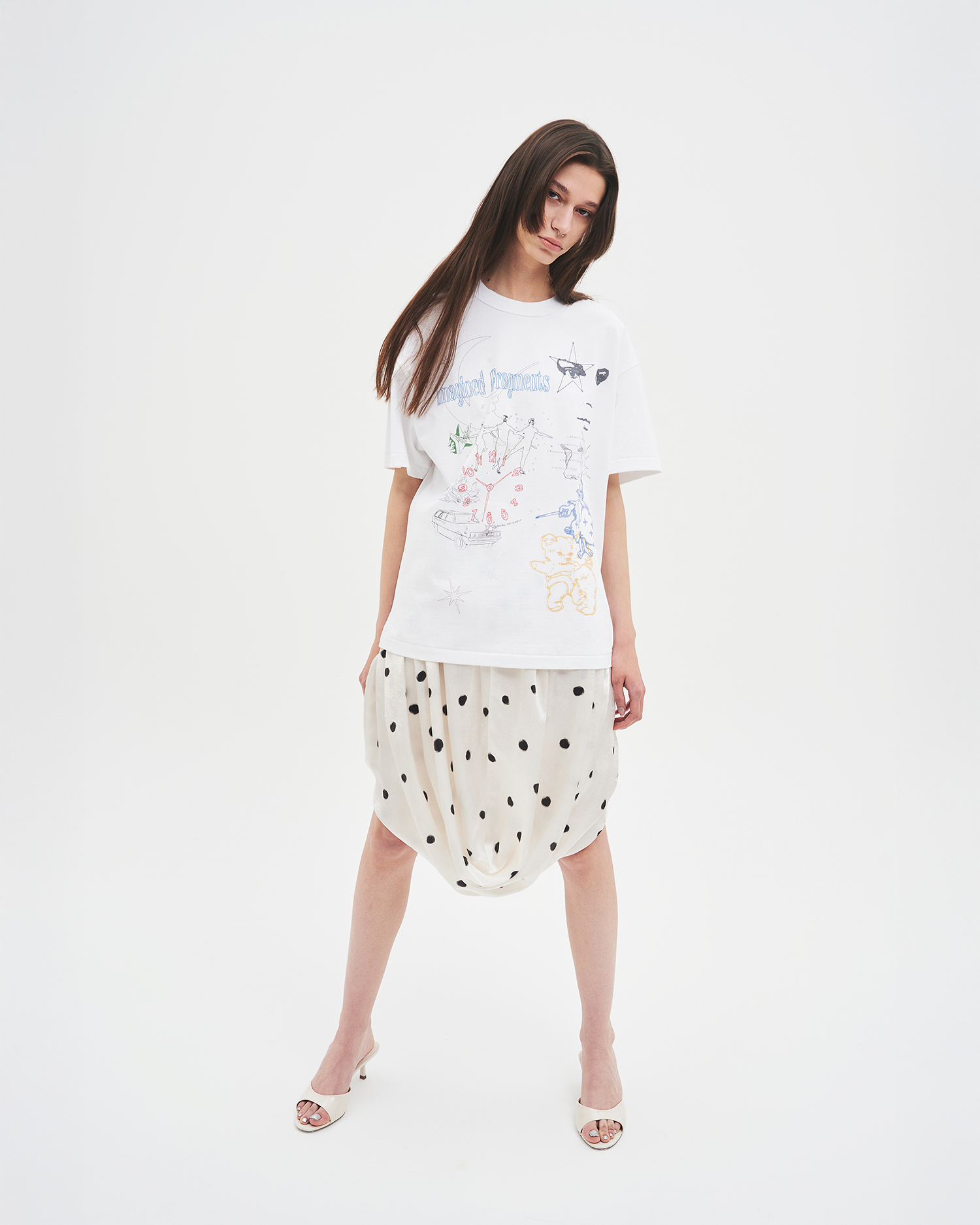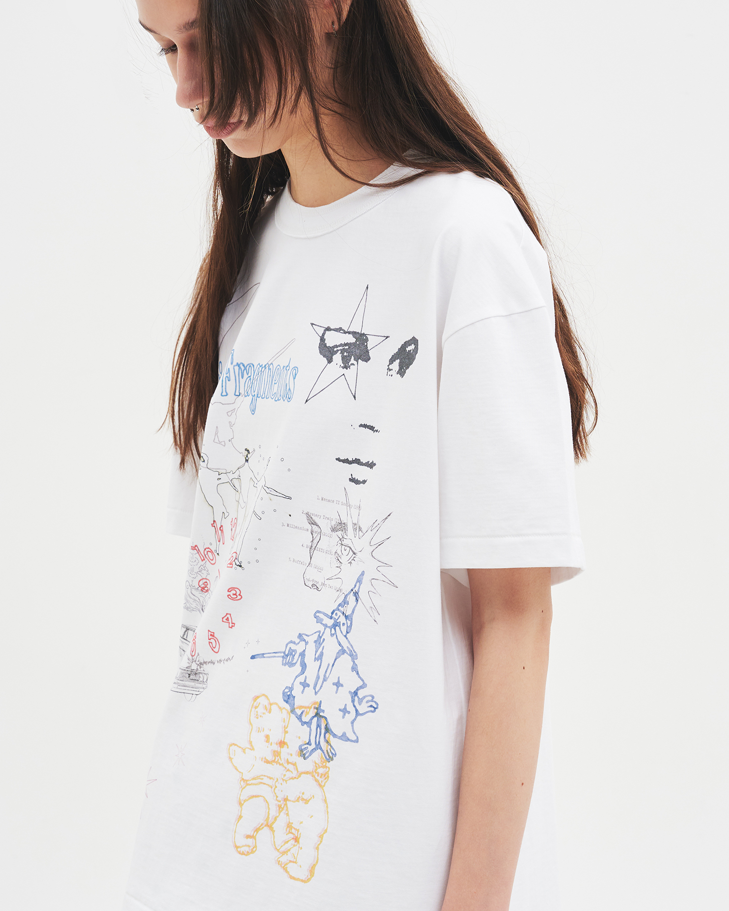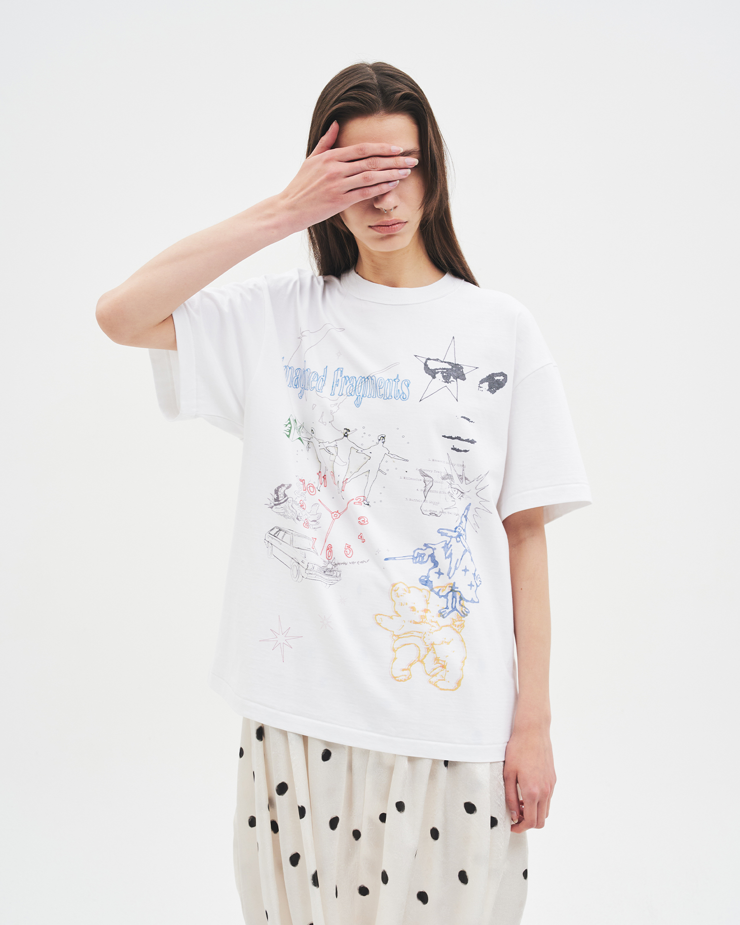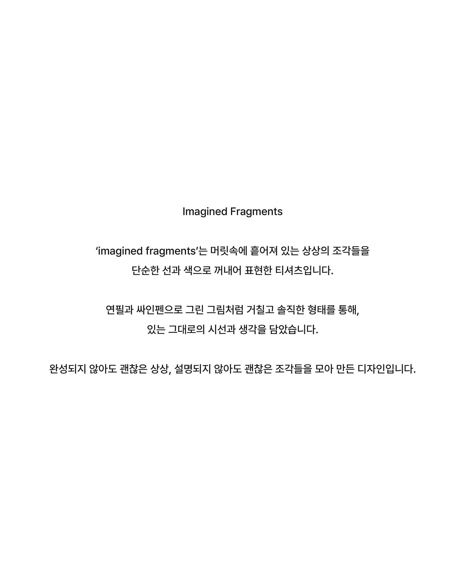 ‘imagined fragments’는 머릿속에 흩어져 있는 상상의 조각들을 단순한 선과 색으로 꺼내어 표현한 티셔츠입니다.