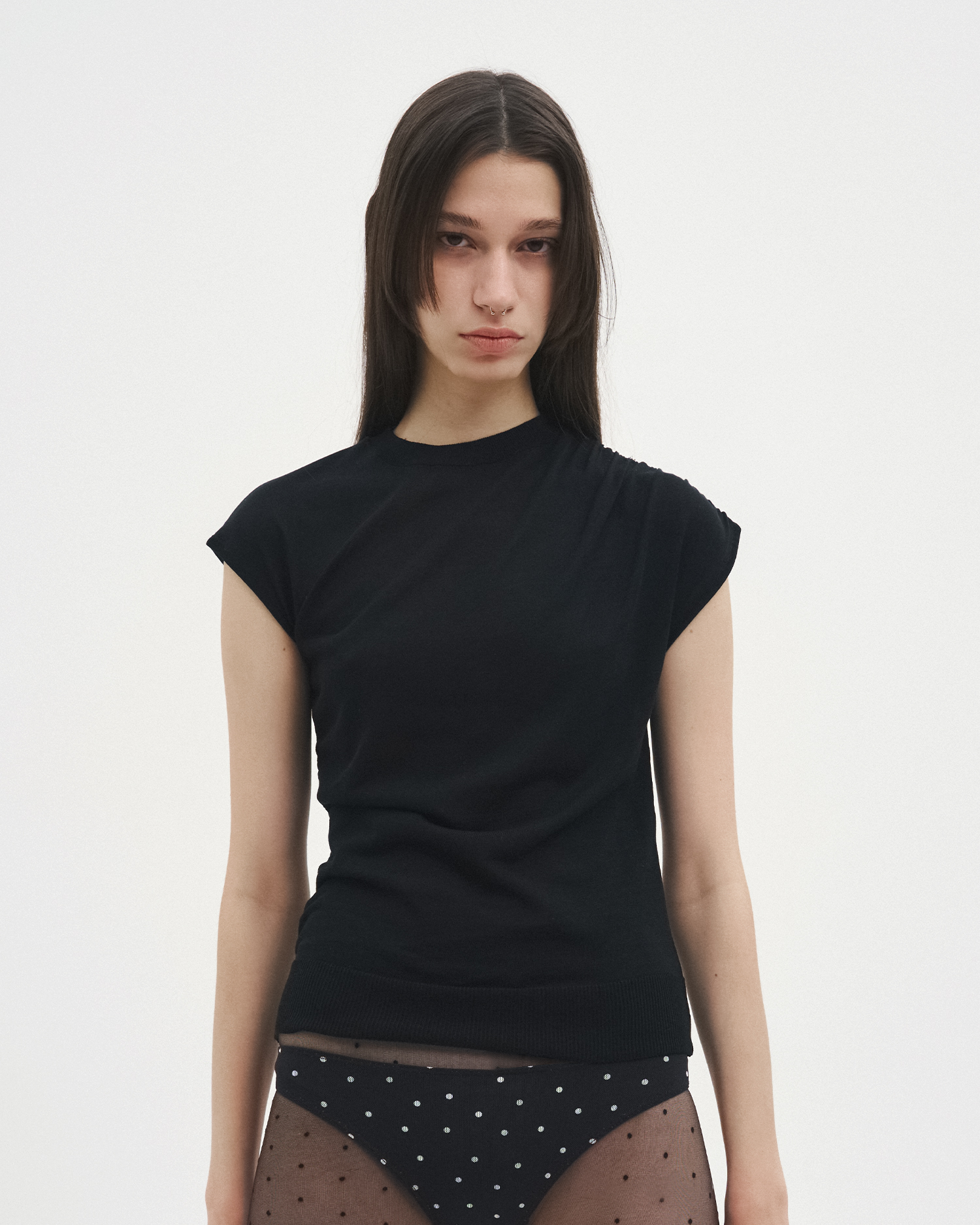 실크 블렌디드 원사를 사용하여 유려한 셔링 디테일로 구현하였습니다.