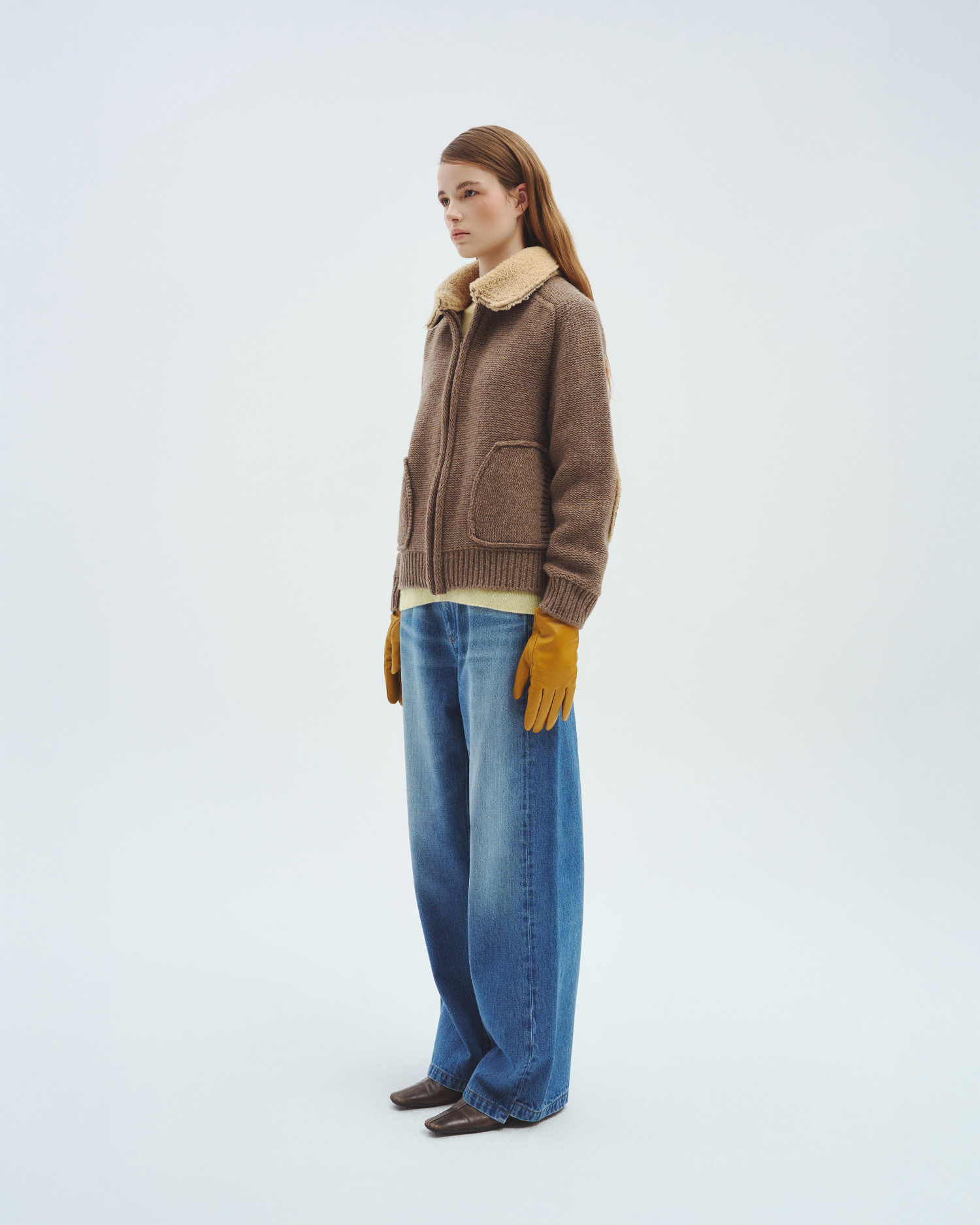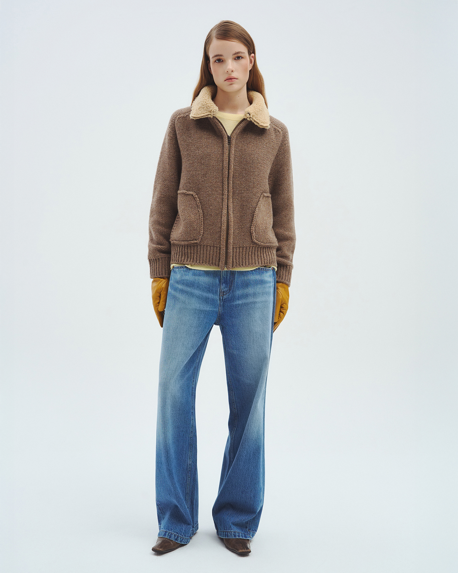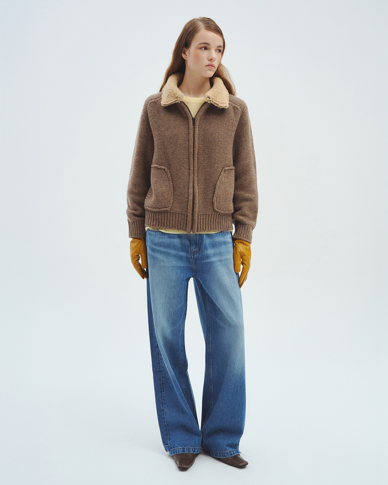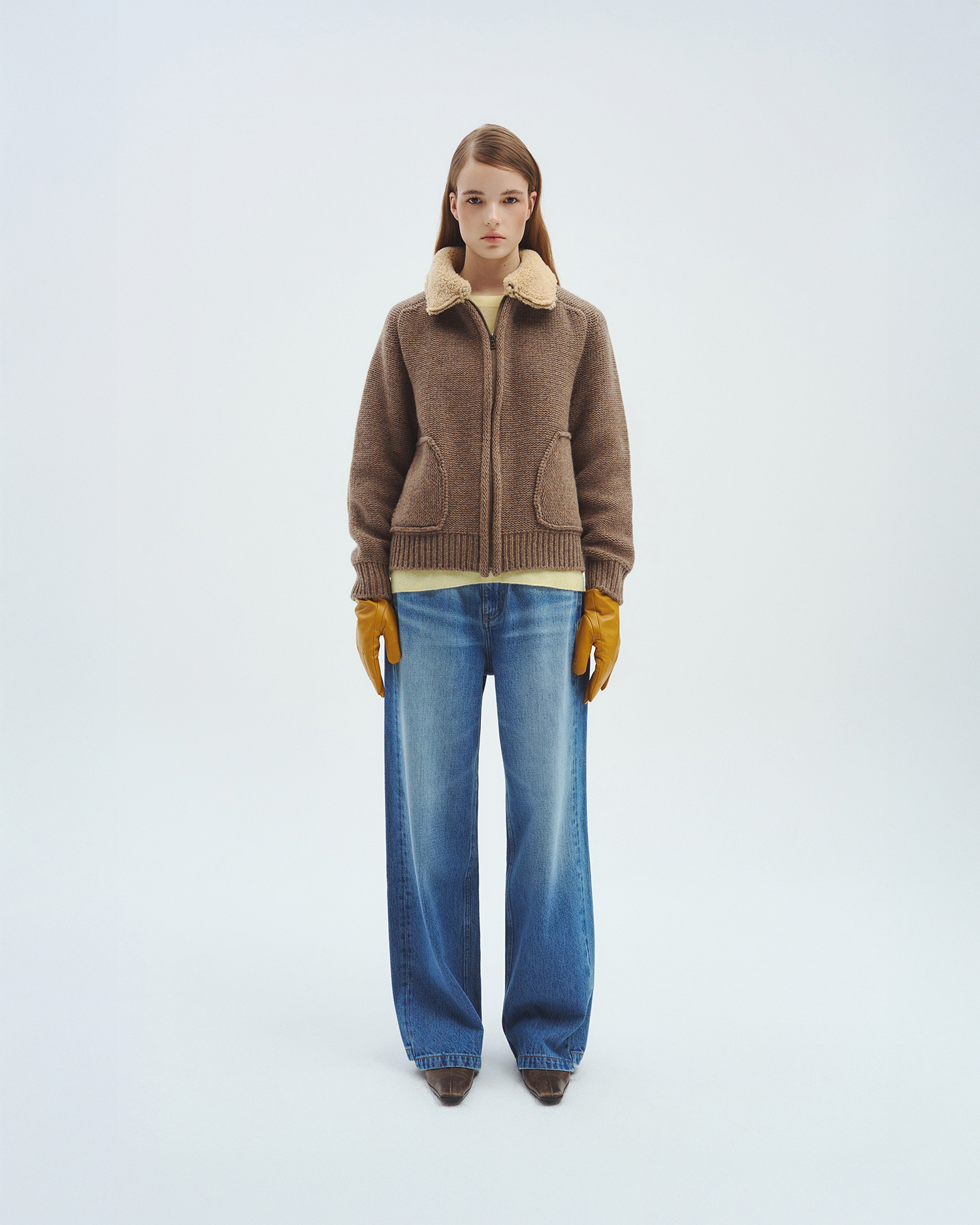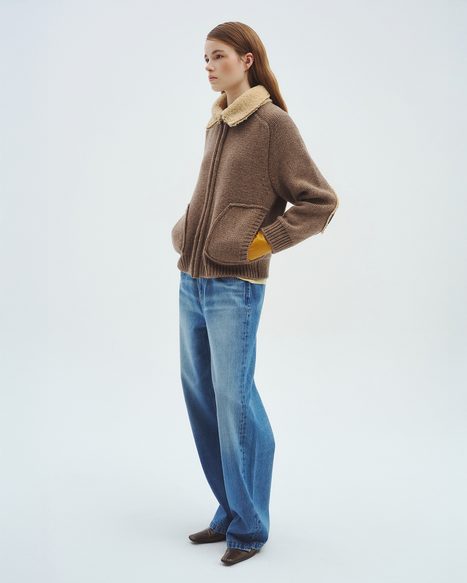 니트 컬러 별로 가죽과 털의 질감, 컬링 디자인까지 하나 하나 정교하게 완성된 니트 집업입니다.