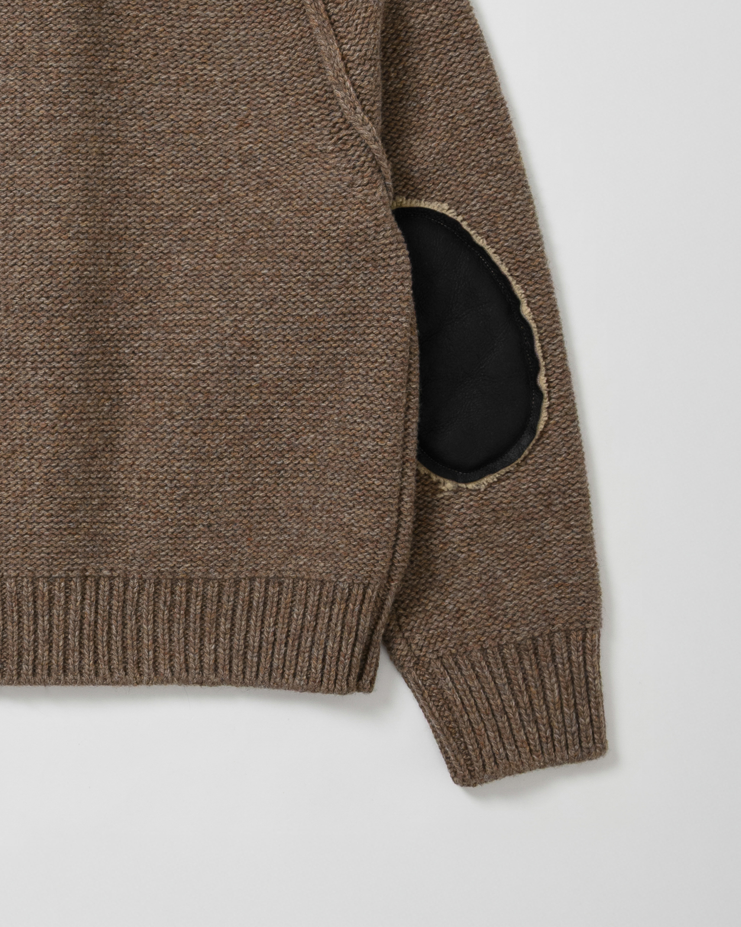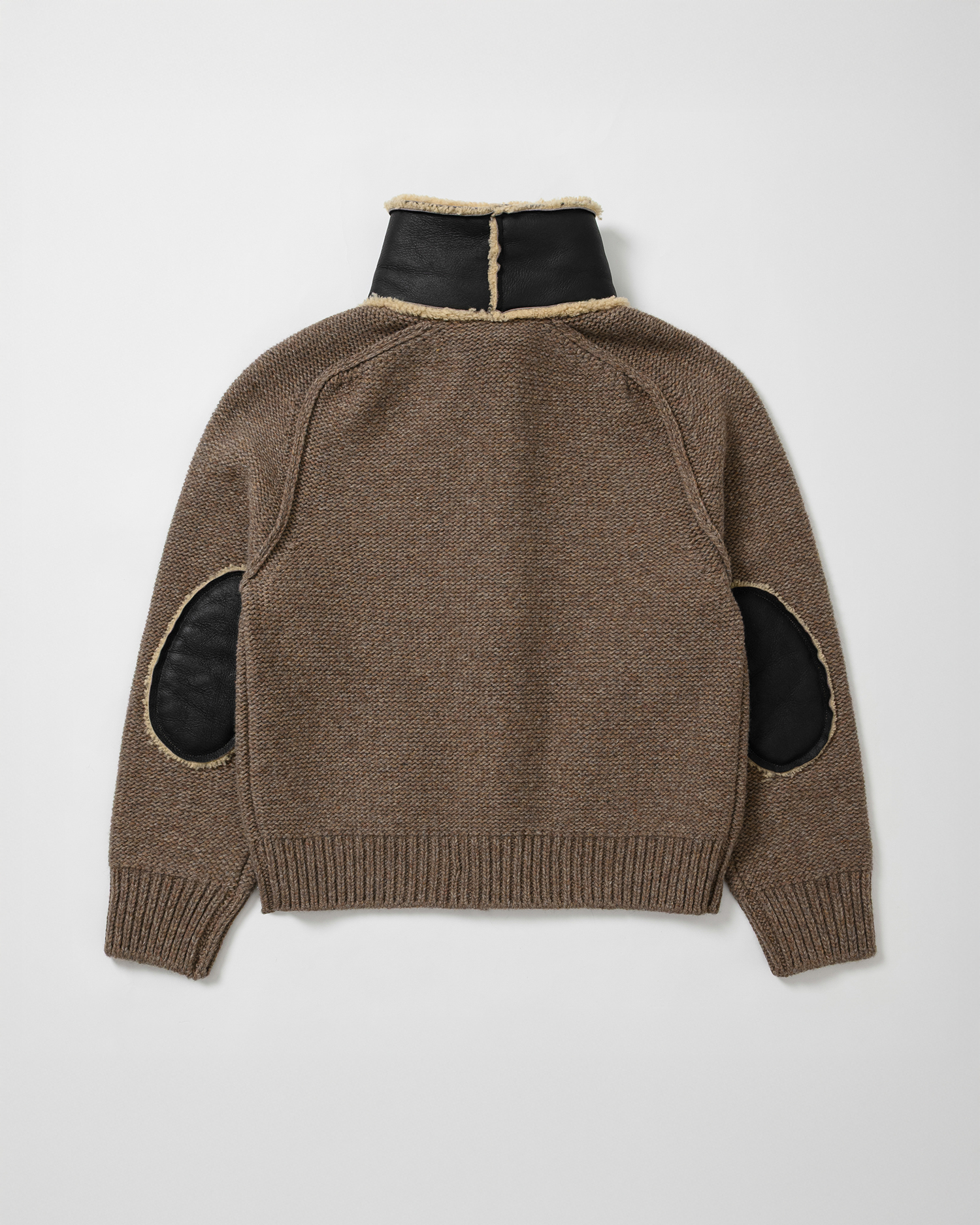 본 제품은 울 블렌디드 니트 소재와 천연 양가죽을 패치하여 제작된 디자인으로