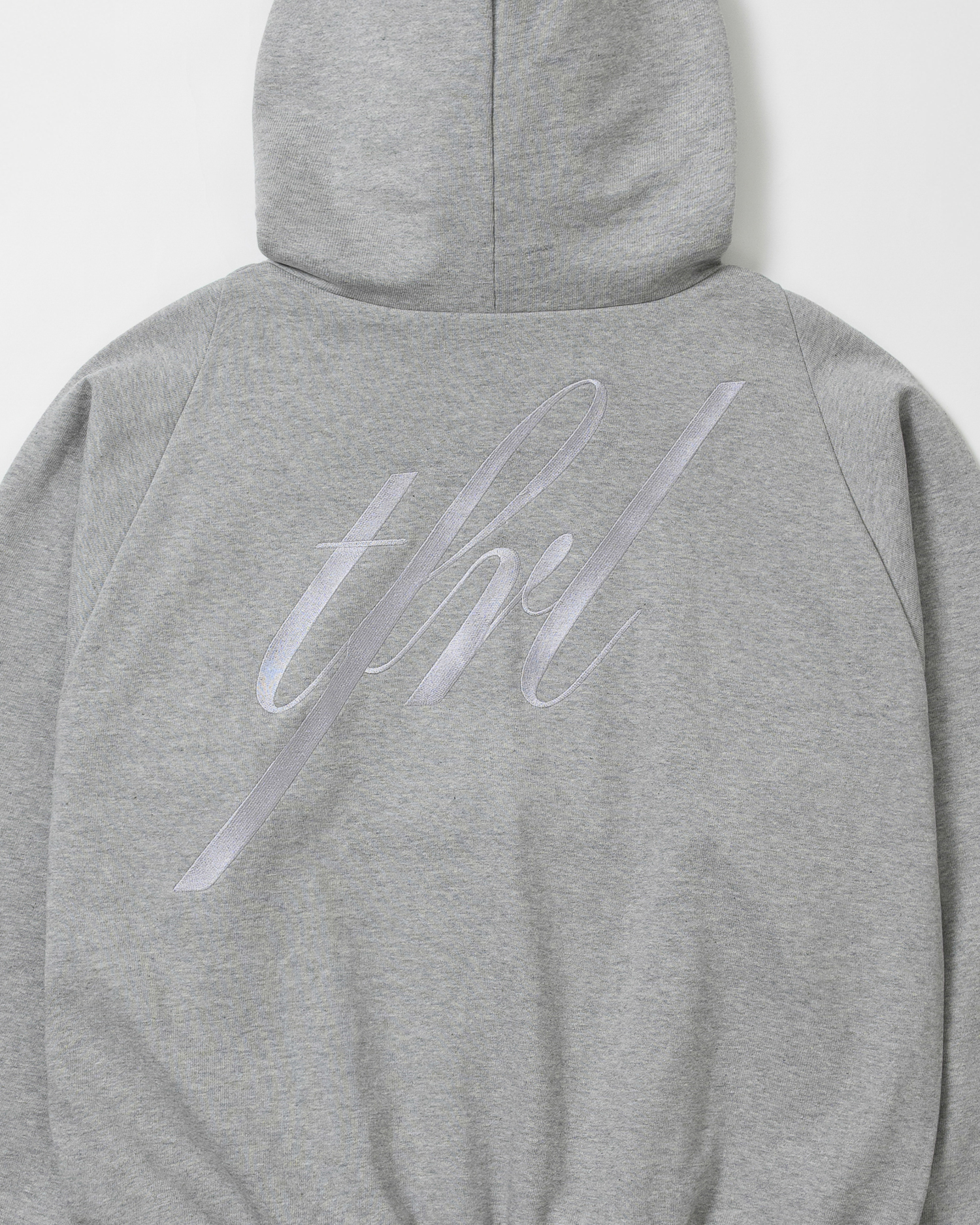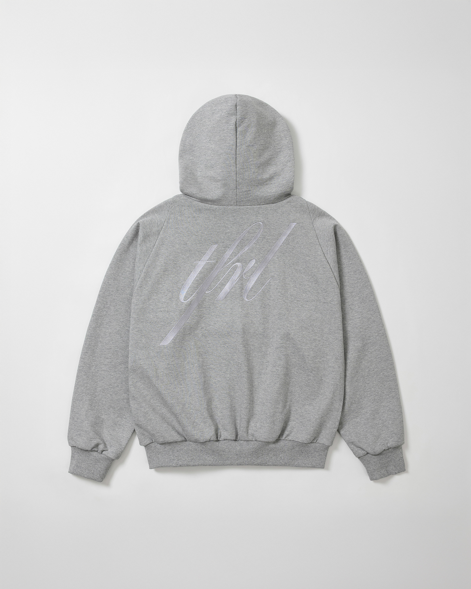 등판에 큰 컬러 매칭 로고 자수와 어깨의 삼각 패턴이 포인트인 오버핏 후드 집업입니다.